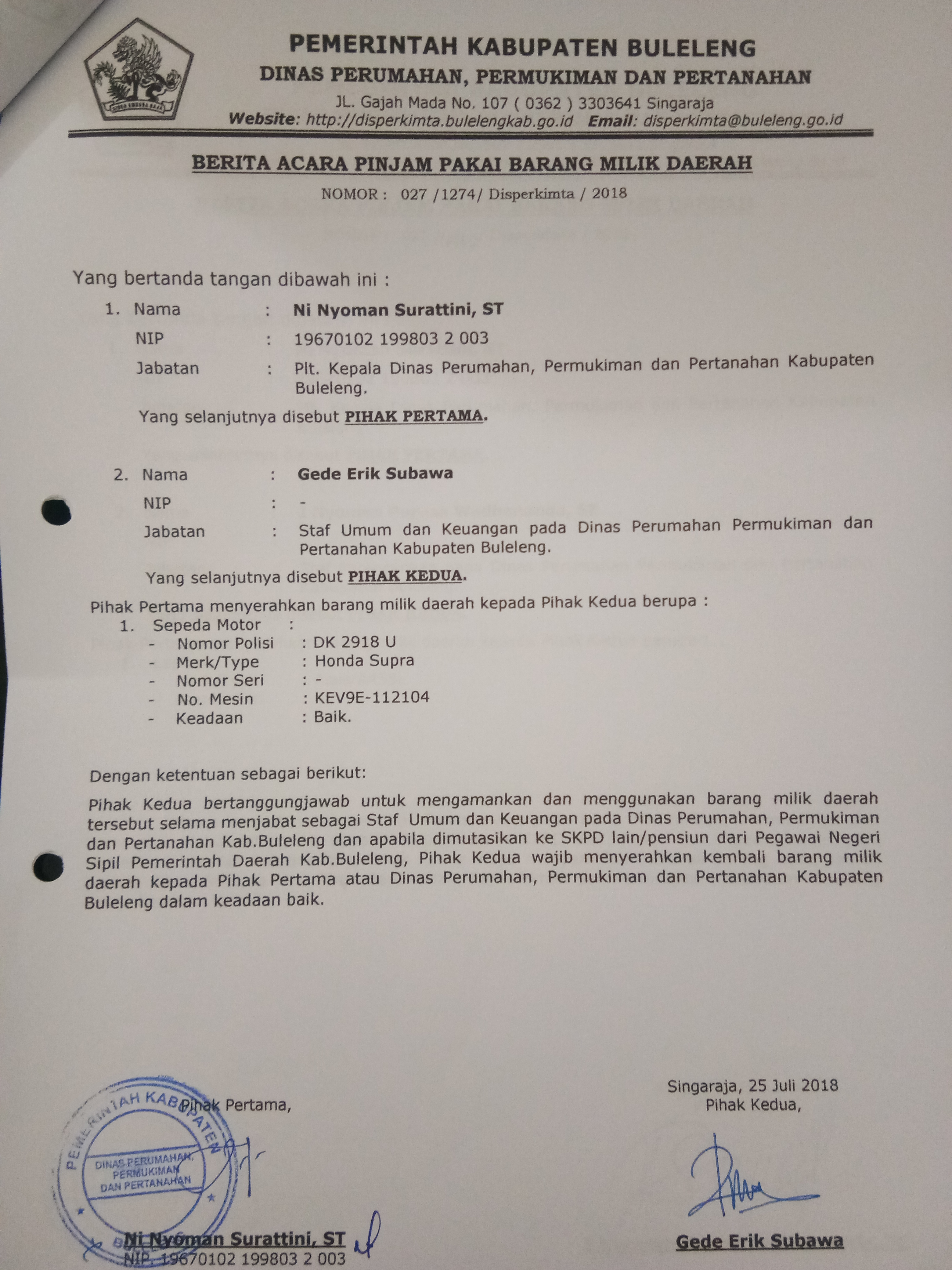 BAPPBMD (BERITA ACARA PINJAM PAKAI BARANG MILIK DAERAH) LAPTOP ASUS