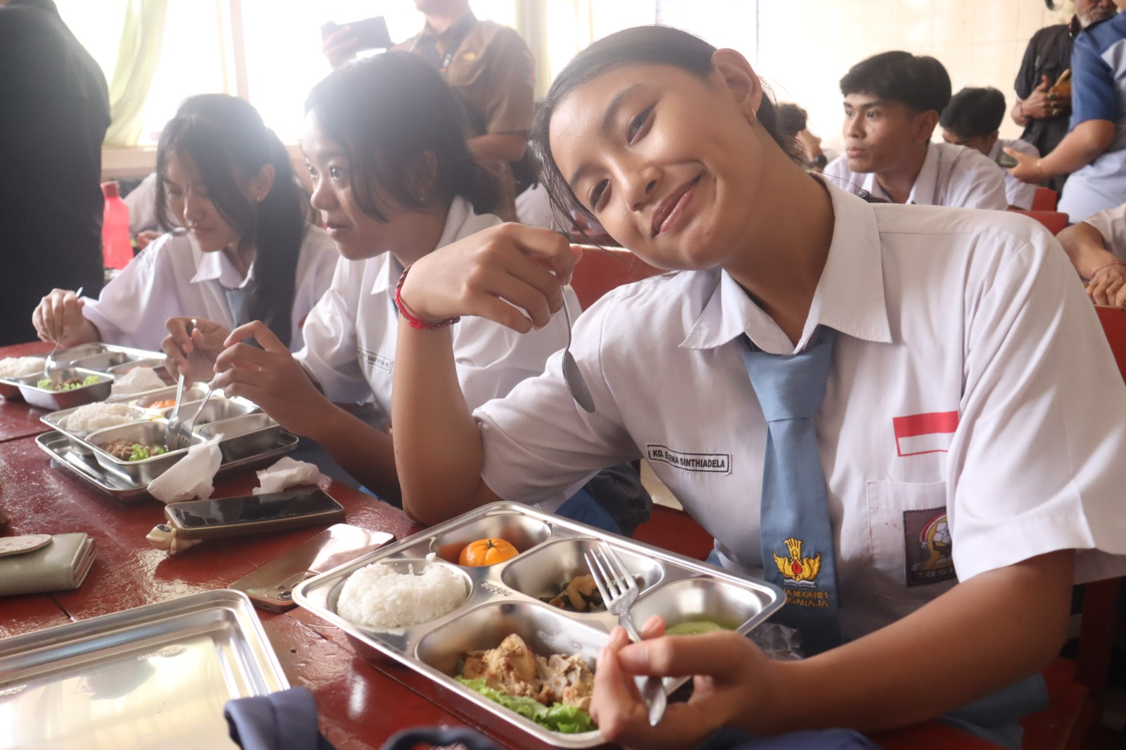 Selain Satya, Rena Sinthiadela, siswi SMA Negeri 1 Singaraja, juga menyebut MBG perdana ini menyenangkan.